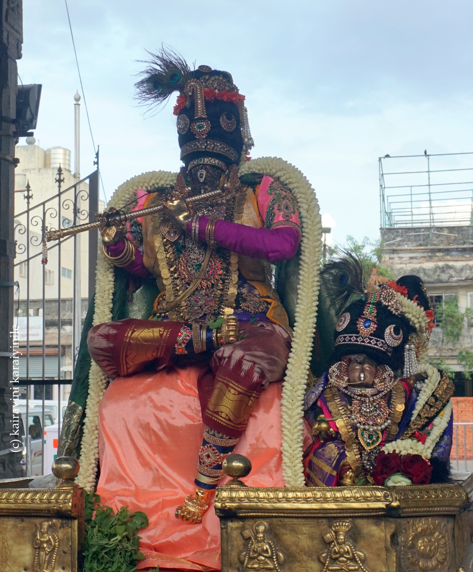 a photo of Emperuman Sri Parthasarathi, as divine flautist along with kutti