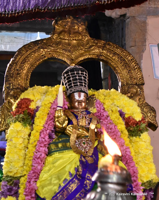 From this day on,  Paramada vassal will be opened in the evening with Swami Nammalwar receiving Him.  Here are some photos of Sri Parthasarathi and Swami Nammalwar of day 1 of Irapathu.